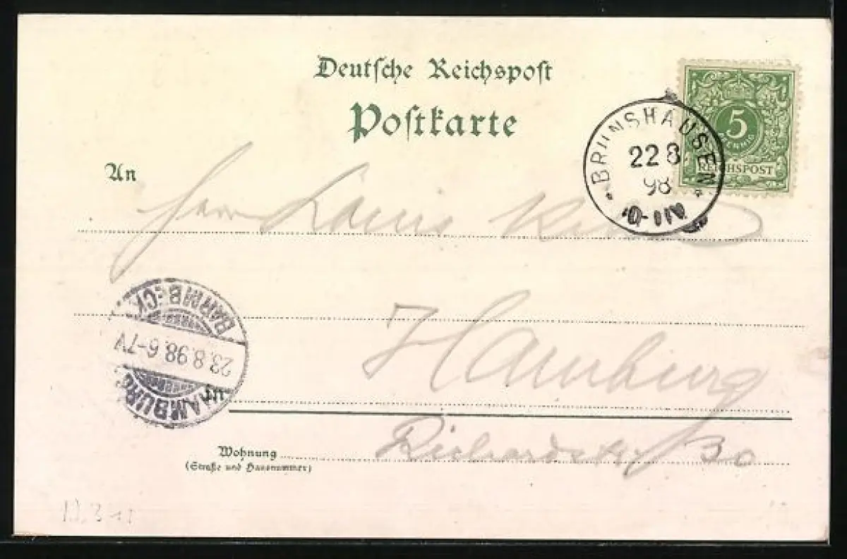 Lithographie Brunshausen, Totalansicht, Schnelldampfer Fürst Bismarck, Stockfleht's Gasthaus