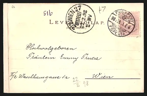 gelaufen 1898, rückseitig Klebe- und Papierreste, guter Zustand