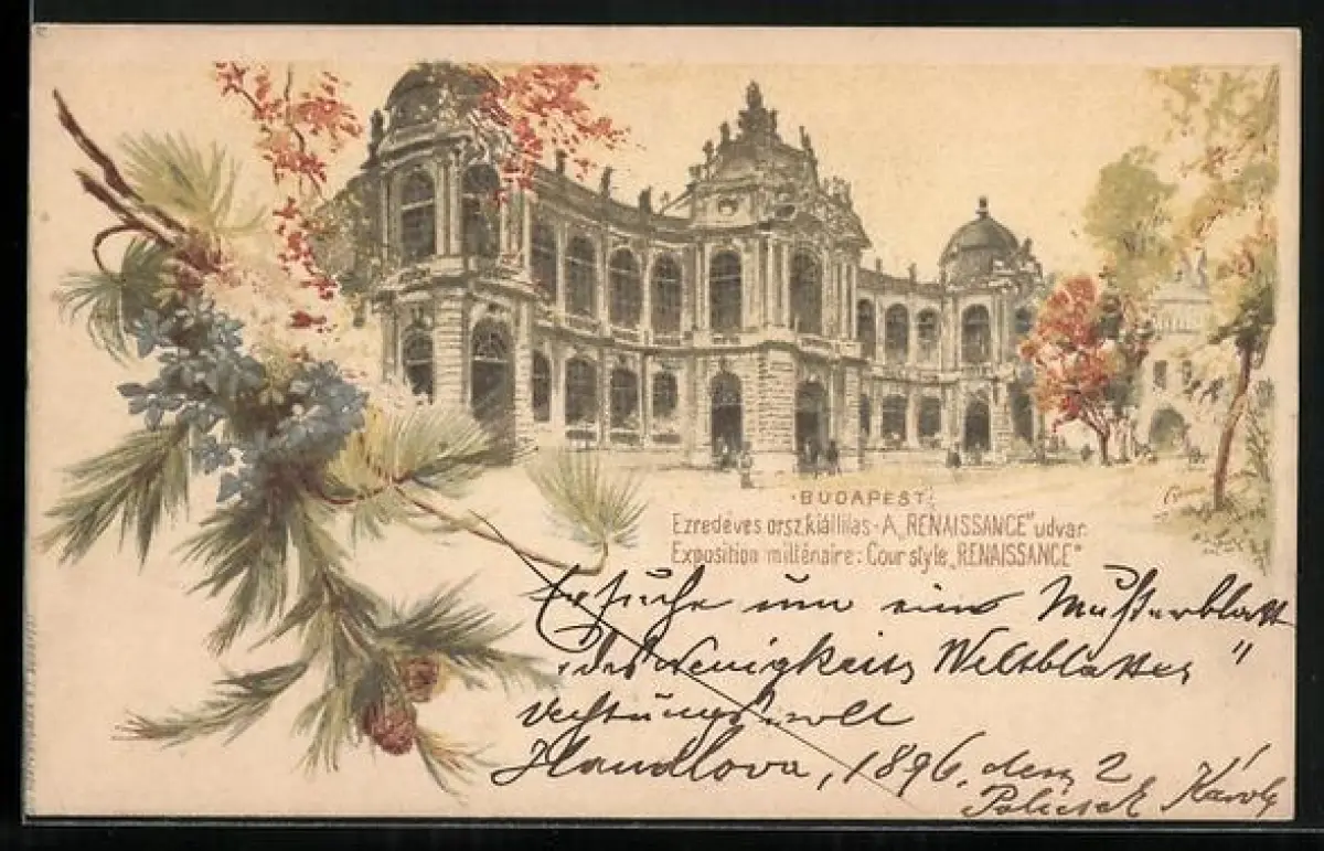 Lithographie Budapest, Exposition millenaire: Cour style Renaissance