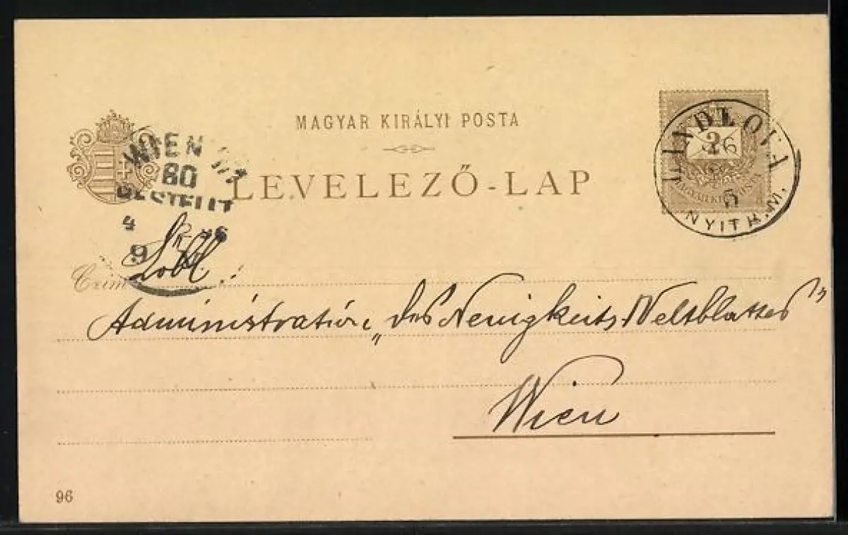 Personenbezogene Daten auf der Rückseite der Karte wurden durch blauen Textmarker unkenntlich gemacht. Die blauen Stellen sind auf die Vorderseite durchgeweicht und wirken sich negativ auf das Postkartenfoto aus