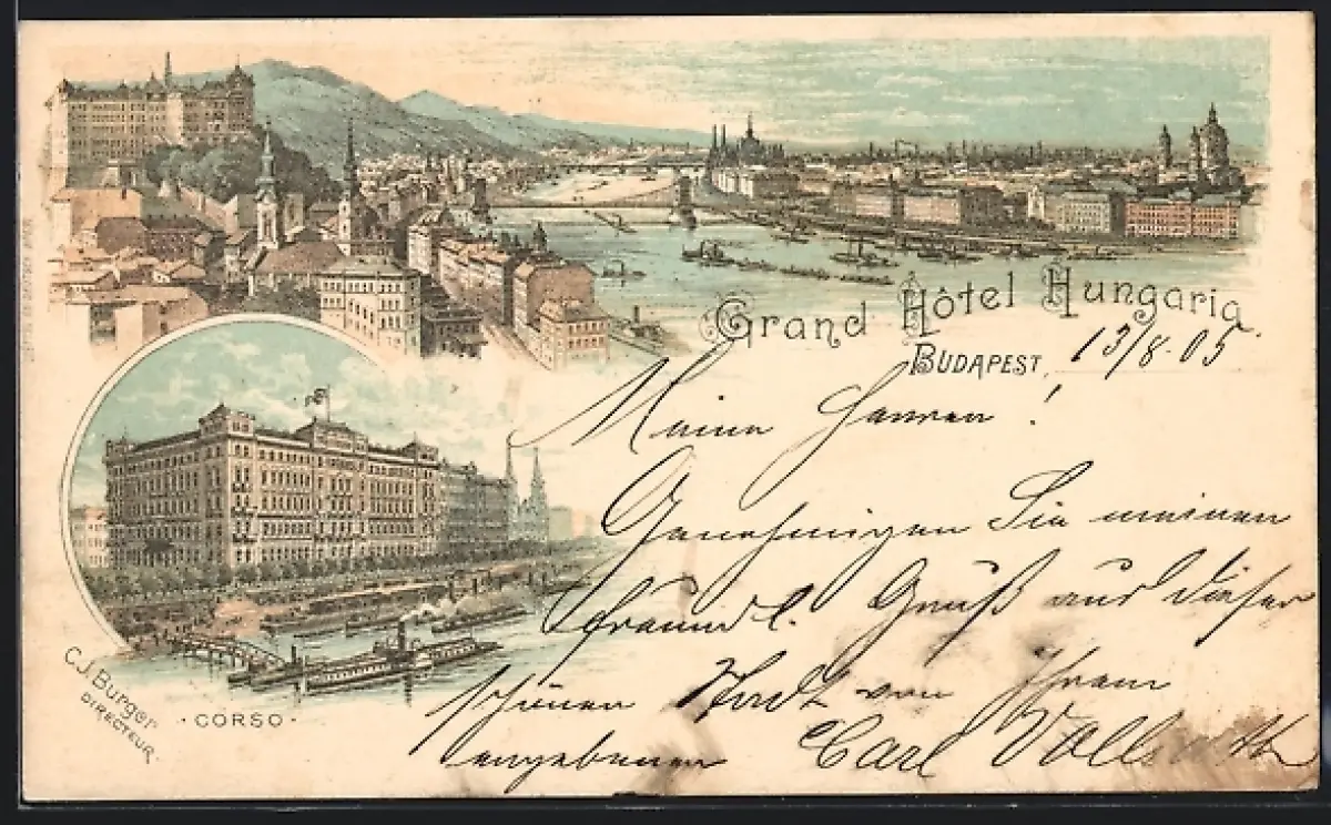Lithographie Budapest, Grand Hotel Hungaria, Corso
