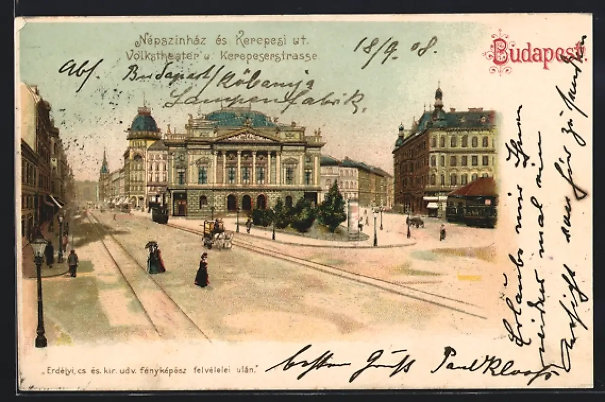Lithographie Budapest, Volkstheater und Kerepeserstrasse