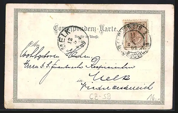 gelaufen 1898, Eckknicke oben li. und unten re., guter Zustand