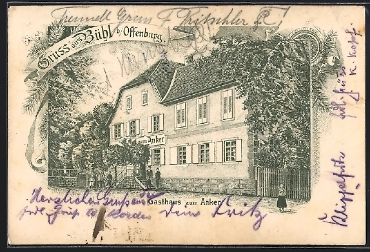 Lithographie Bühl b. Offenburg, Gasthaus zum Anker