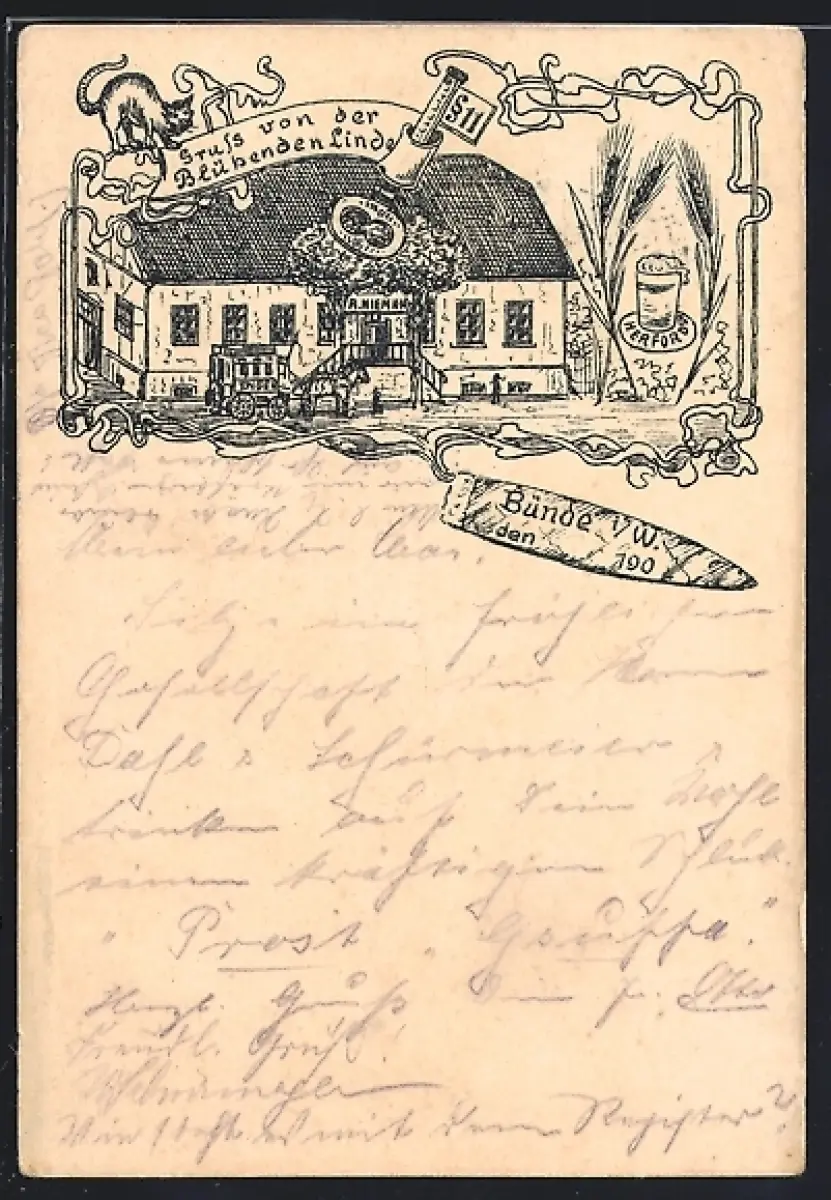 Lithographie Bünde, Gasthof zur Blühenden Linde
