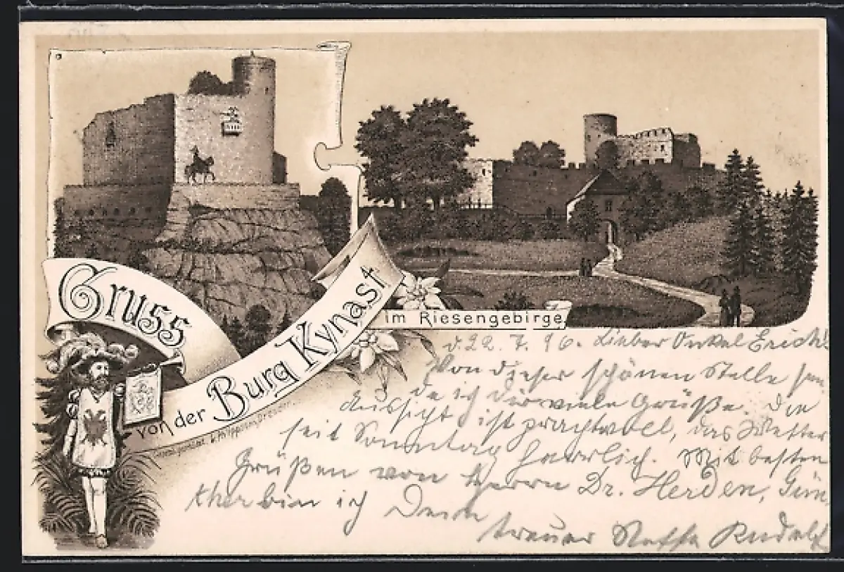 Lithographie Burg Kynast i. Riesengebirge, Restaurant M. Bischoff, Burgruine