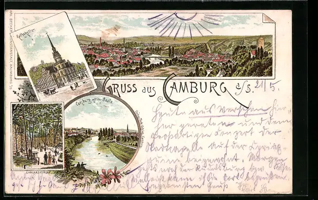 Lithographie Camburg a. S., Rathskeller, Cyriakskirche
