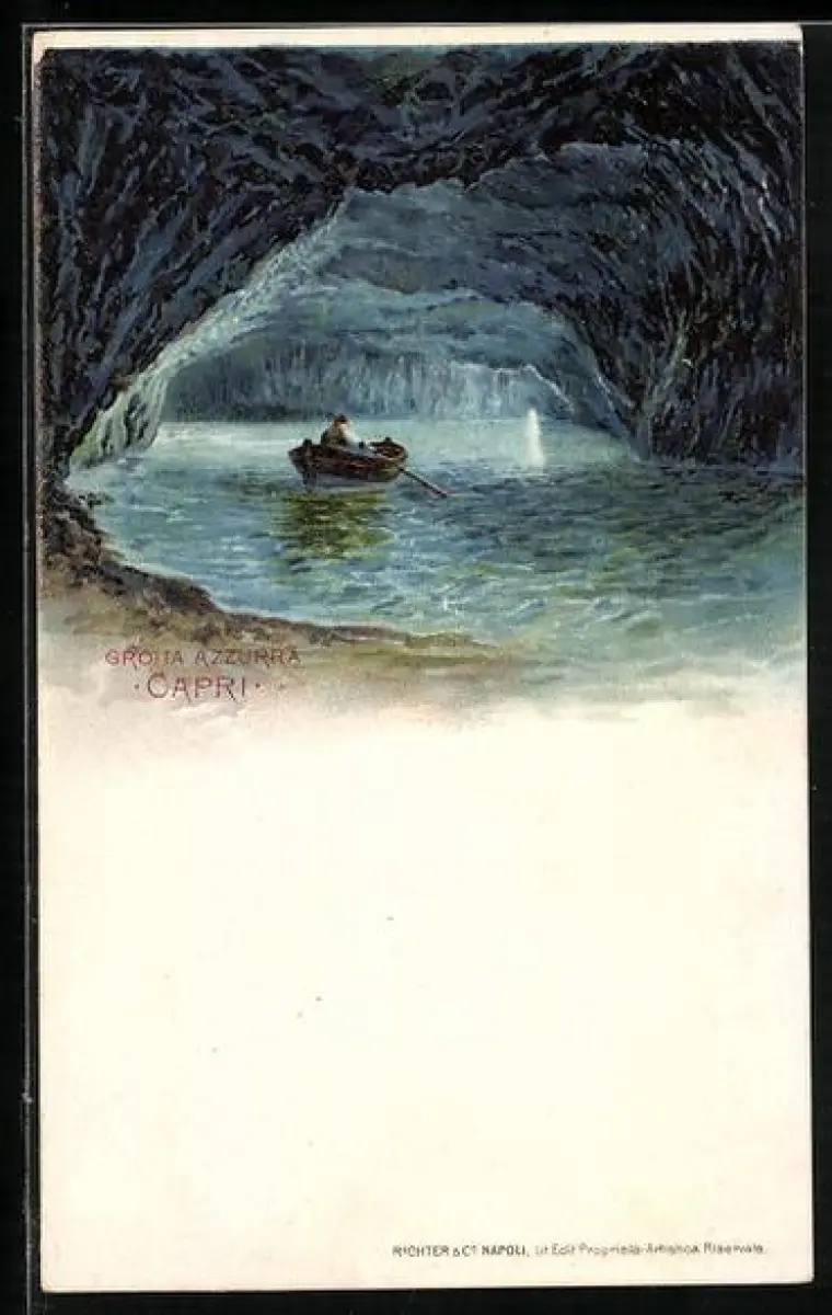 Lithographie Capri, Grotta Azzurra, Ruderboot