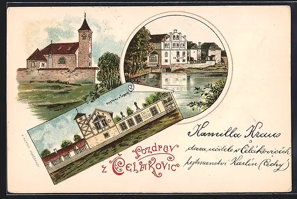 Lithographie Celakovic, Kostinec u Tupyah, Kirche