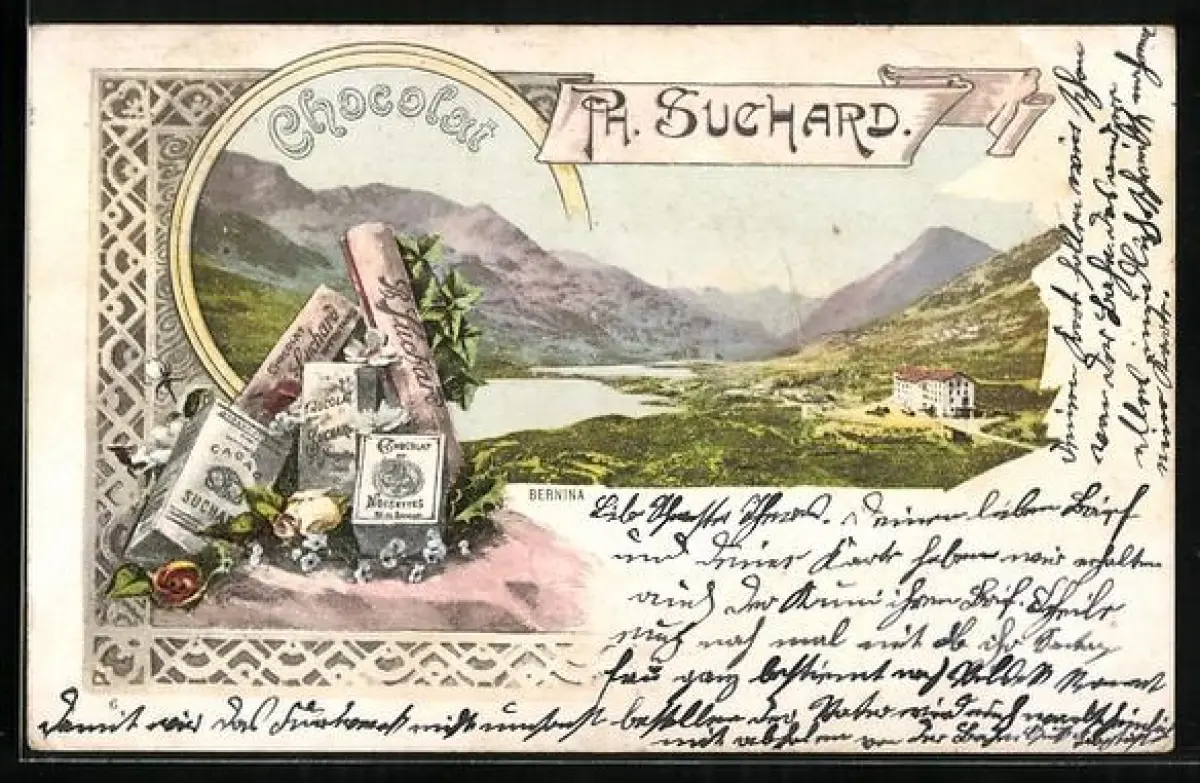 Lithographie Chocolat Ph. Suchard, Bernina, Kakao