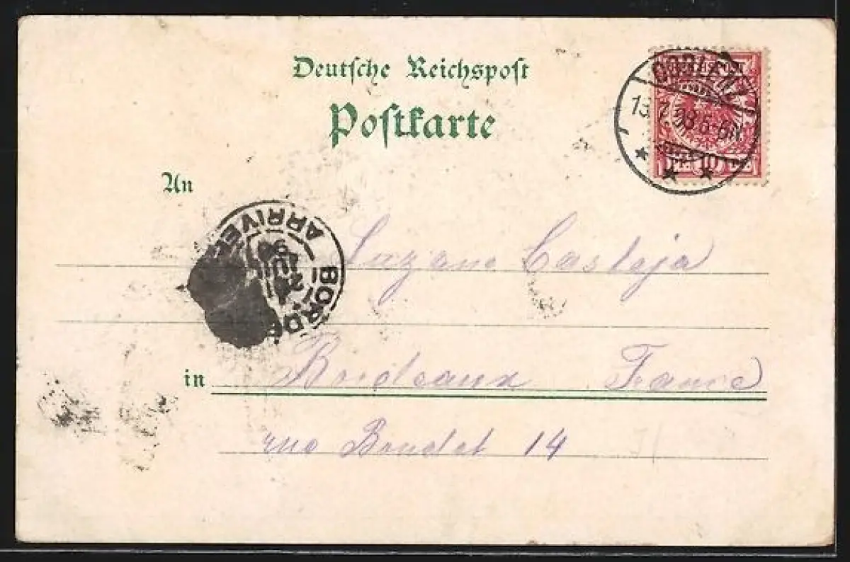 gelaufen 1898, Eckknick re. oben, guter Zustand