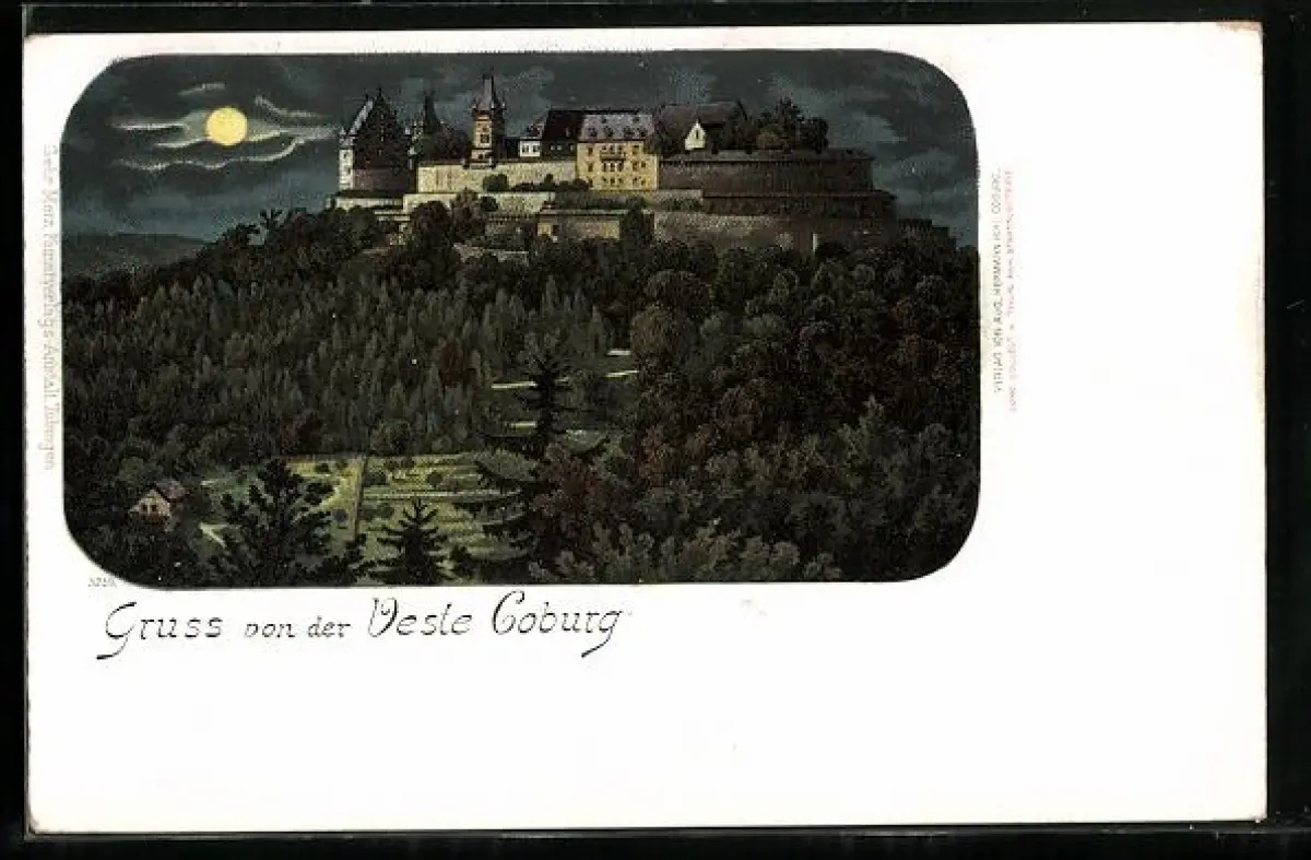 Lithographie Coburg, Veste und Umgebung bei Nacht