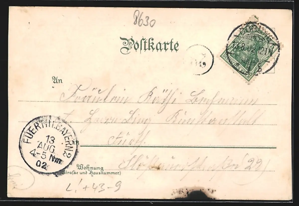 gelaufen 1902, guter Zustand