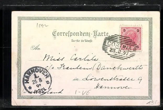 gelaufen 1897, Eckknicke unten, guter Zustand