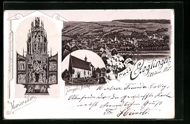 Lithographie Creglingen, Herrgotts-Kirche, Marienalter, Gesamtansicht