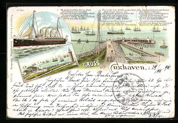 Lithographie Cuxhaven, Leuchtturm und Seepavillon, Alte Liebe