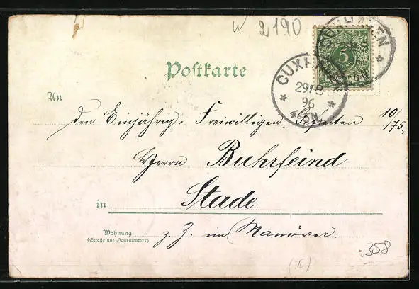 gelaufen 1896, Eckknicke unten, Einriss oben re., guter Zustand