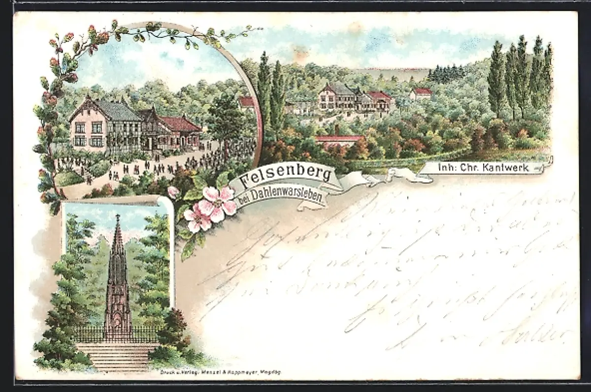 Lithographie Dahlenwarsleben, Gasthaus Felsenberg v. Chr. Kantwerk