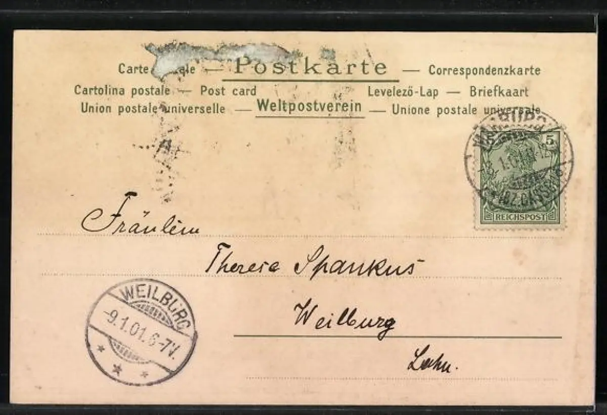 gelaufen 1901, rückseitig Klebe- und Papierreste, guter Zustand