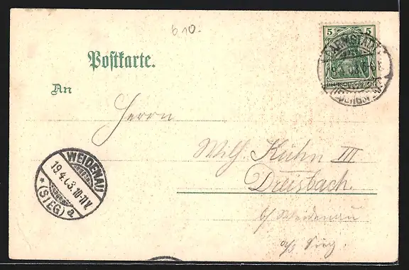 gelaufen 1903, Eckknick re. unten, guter Zustand