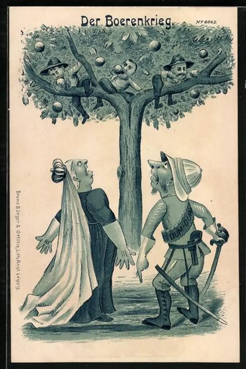 Lithographie Der Boerenkrieg, Königin & Offizier befehlen Männern v. Baum zu kommen, Burenkrieg