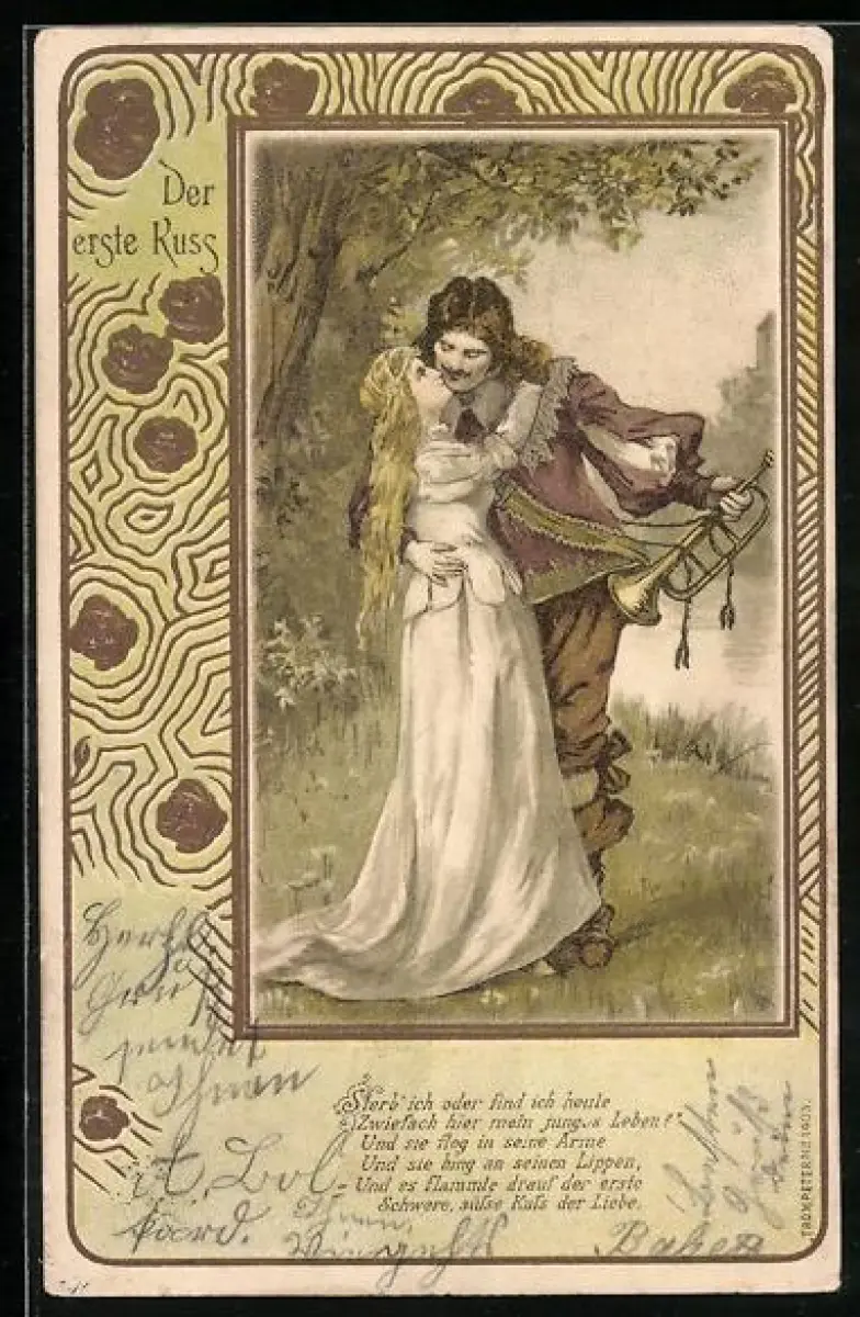 Lithographie Der erste Kuss des Trompeters von Säckingen, Behüt Dich Gott!