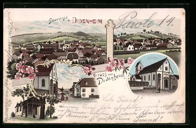 Lithographie Didenheim, Kirche, Kapelle, Ortsansicht