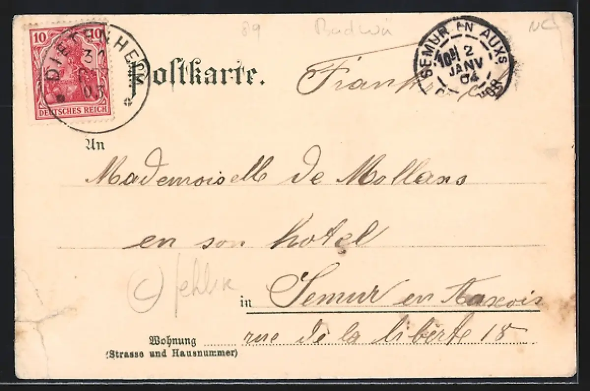 gelaufen 1904, Eckknick re. unten, guter Zustand