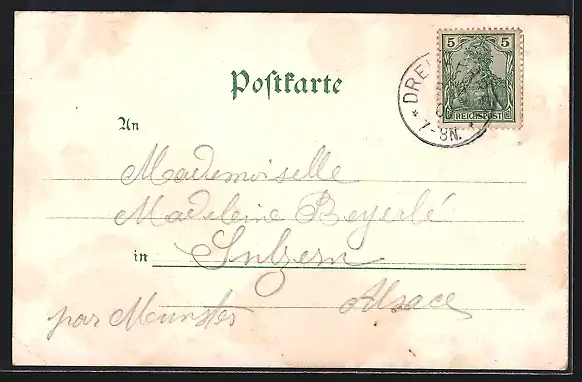 gelaufen 1900, Eckknick re. unten, guter Zustand