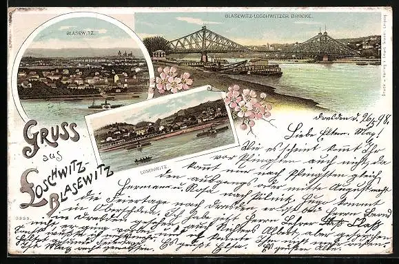 Lithographie Dresden-Blasewitz, Elbpartie mit Loschwitzer Brücke, Totalansicht