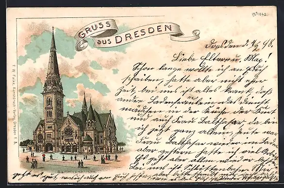 Lithographie Dresden-Neustadt, Blick auf die Garnisonkirche