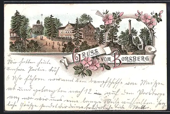 Lithographie Dresden-Rockau, Partie mit Gasthaus, Denkmal & Gradmessungssäule