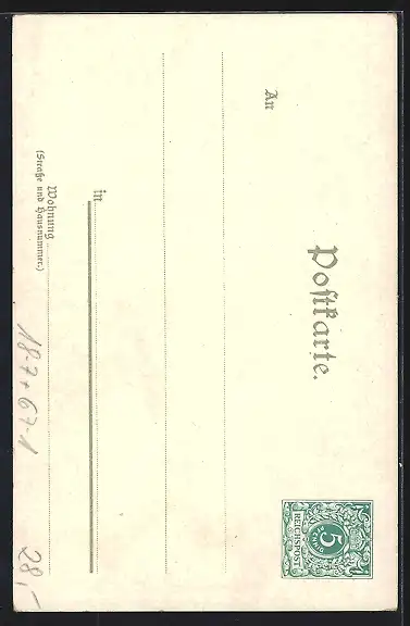 Personenbezogene Daten auf der Rückseite der Karte wurden durch blauen Textmarker unkenntlich gemacht. Die blauen Stellen sind auf die Vorderseite durchgeweicht und wirken sich negativ auf das Postkartenfoto aus