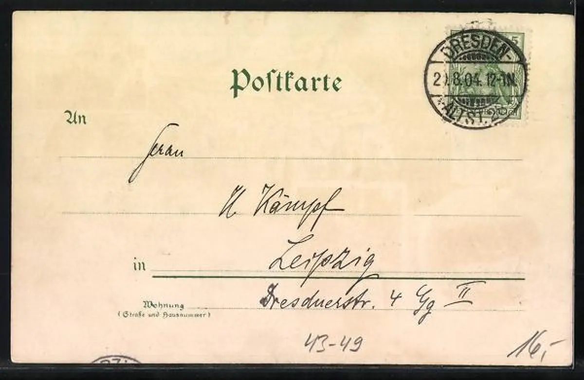 gelaufen 1904, Eckknicke li., guter Zustand