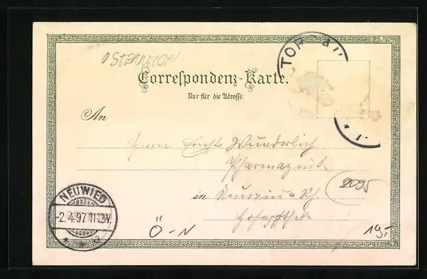 gelaufen 1897, Briefmarke entfernt, guter Zustand