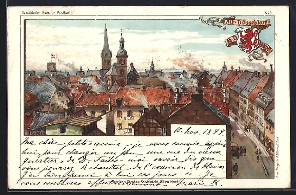 Lithographie Düsseldorf, Ansicht der Altstadt