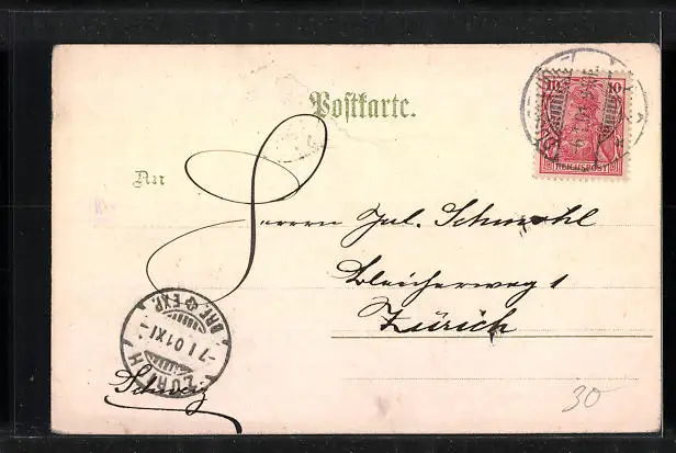 gelaufen 1901, Bugspur oben mittig, guter Zustand