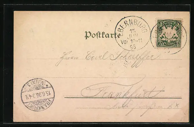 gelaufen 1896, Eckknick unten rechts, guter Zustand