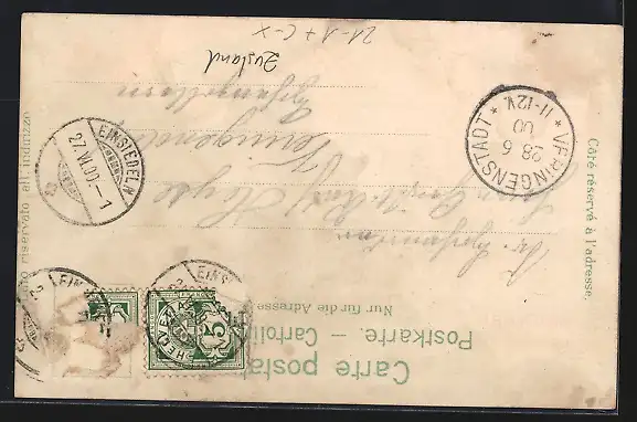 gelaufen 1900, Briefmarke entfernt, Eckknick li. oben, guter Zustand