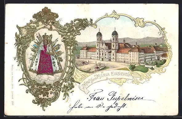 Lithographie Einsiedeln, Maria Einsiedel, Kloster, Gnadenbild