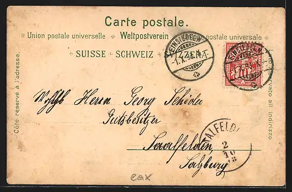 gelaufen 1898, Eckknick li. oben, guter Zustand