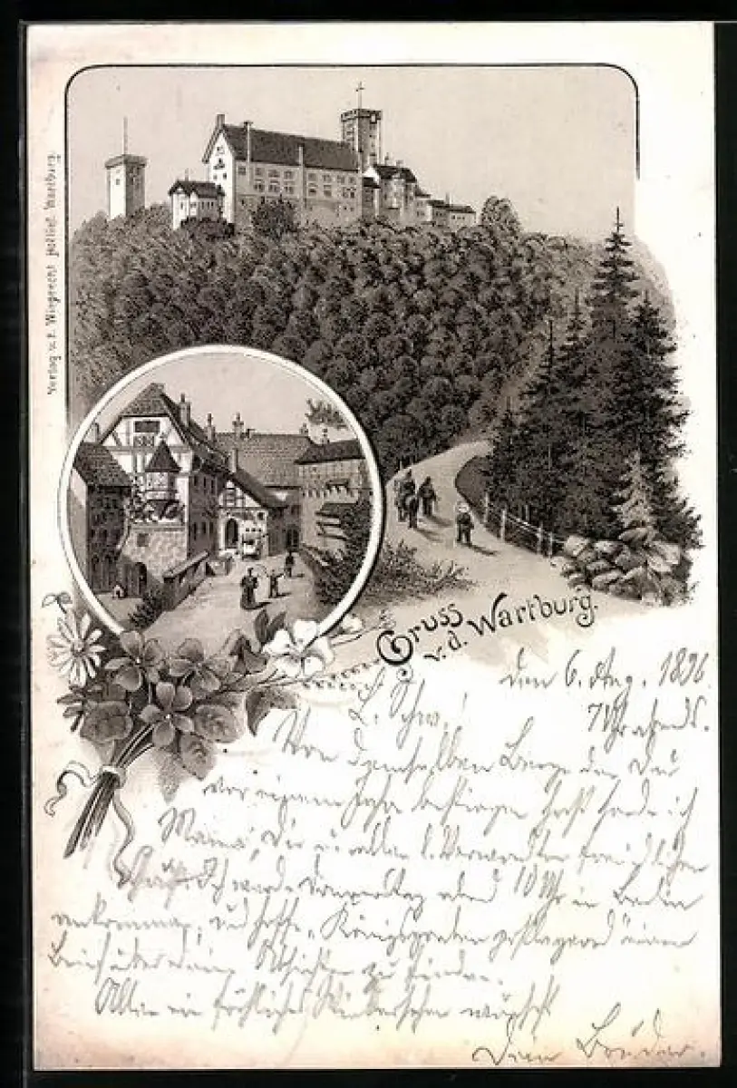Lithographie Eisenach, Wartburg, Partie im Hof