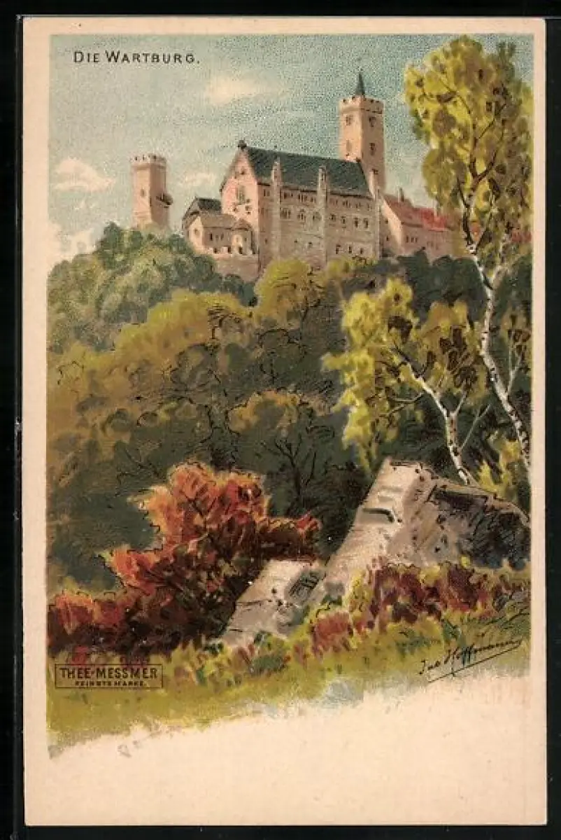 Lithographie Eisenach, die Wartburg mit umliegender Landschaft