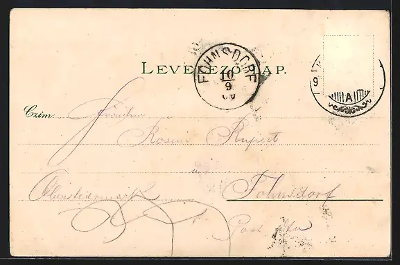 gelaufen 1900, Briefmarke entfernt, Eckknick re. unten, guter Zustand