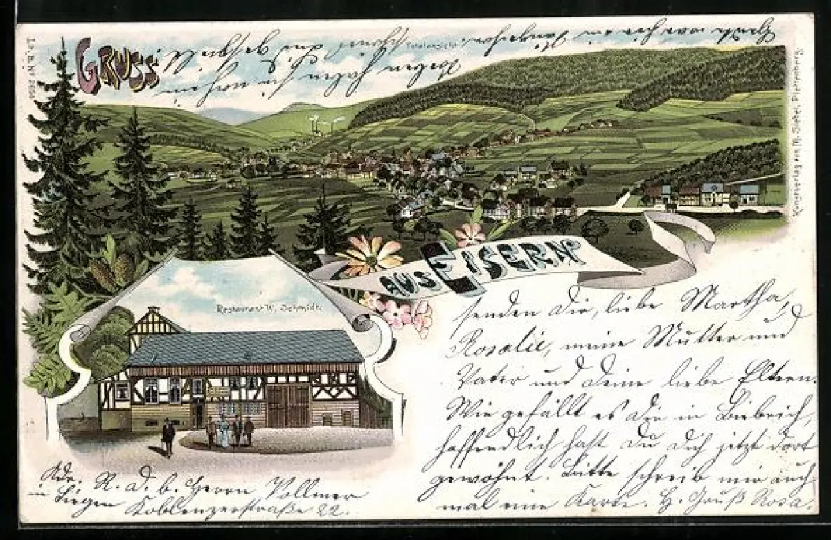 Lithographie Eisern, Restaurant W. Schmidt, Totalansicht
