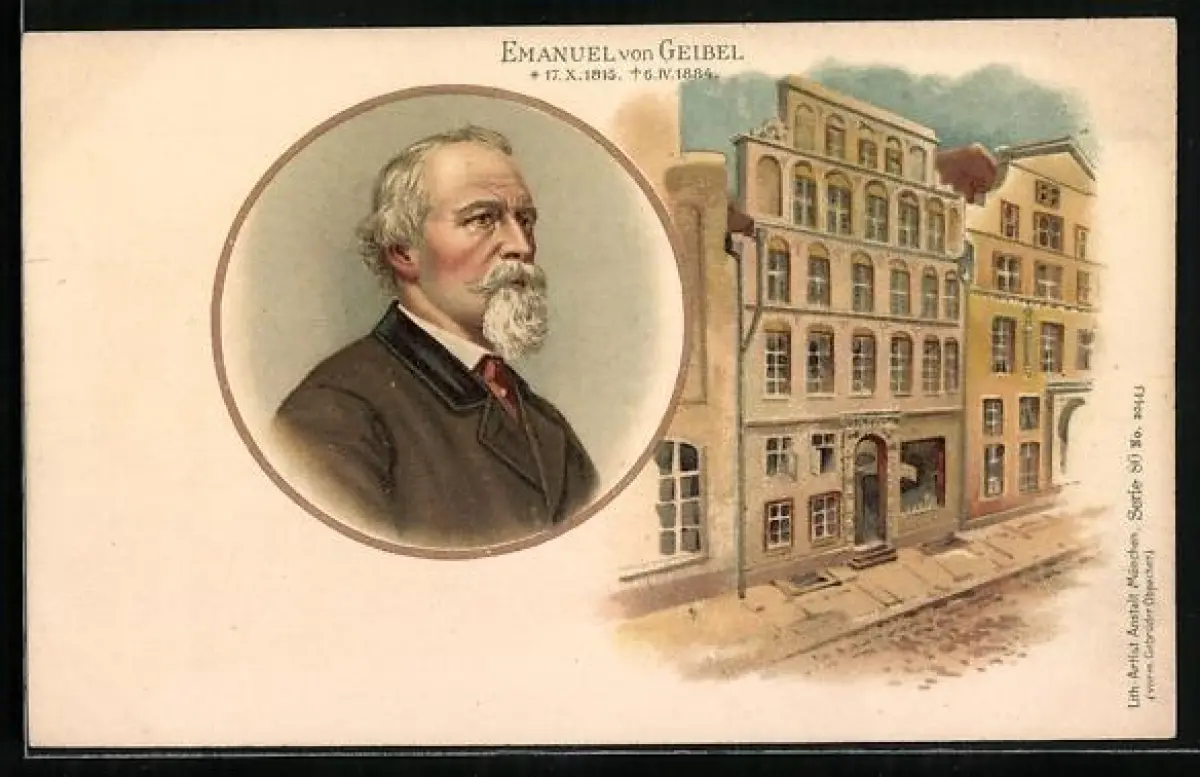 Lithographie Emanuel von Geibel, deutscher Lyriker