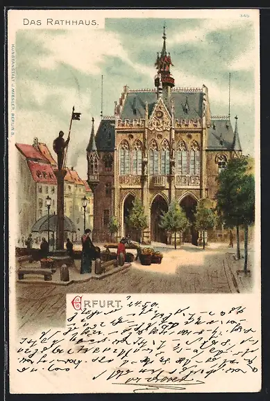 Lithographie Erfurt, Strassenpartie am Rathaus