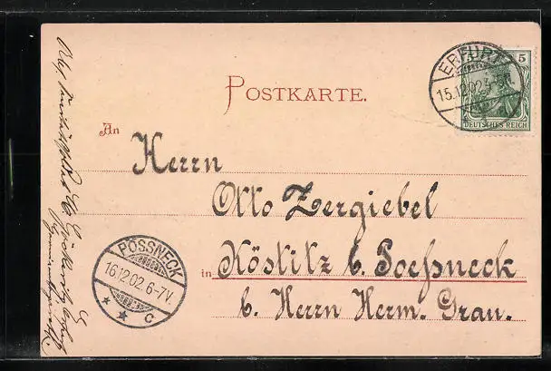 gelaufen 1902, Bugspur links oben, guter Zustand