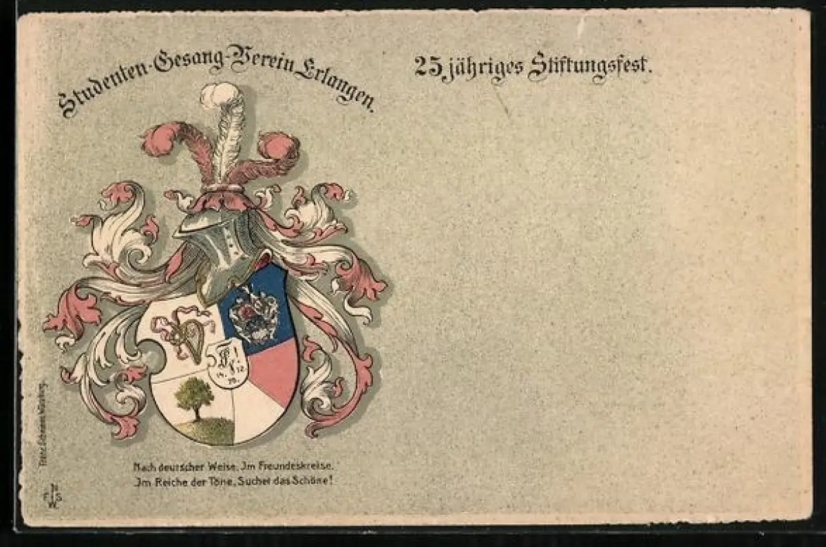 Lithographie Erlangen, Studentenwappen des Studenten Gesang Verein, 25 jähriges Stiftungsfest