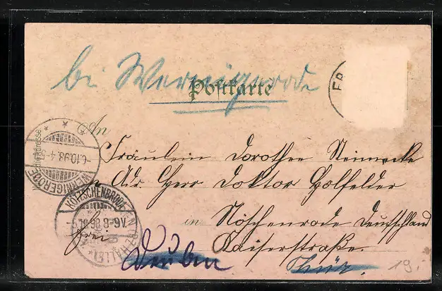 gelaufen 1898, Briefmarke entfernt, rückseitig Oberflächenschaden, Eckknicke unten li. und oben re., Bugspuren oben li. und horizontal mittig